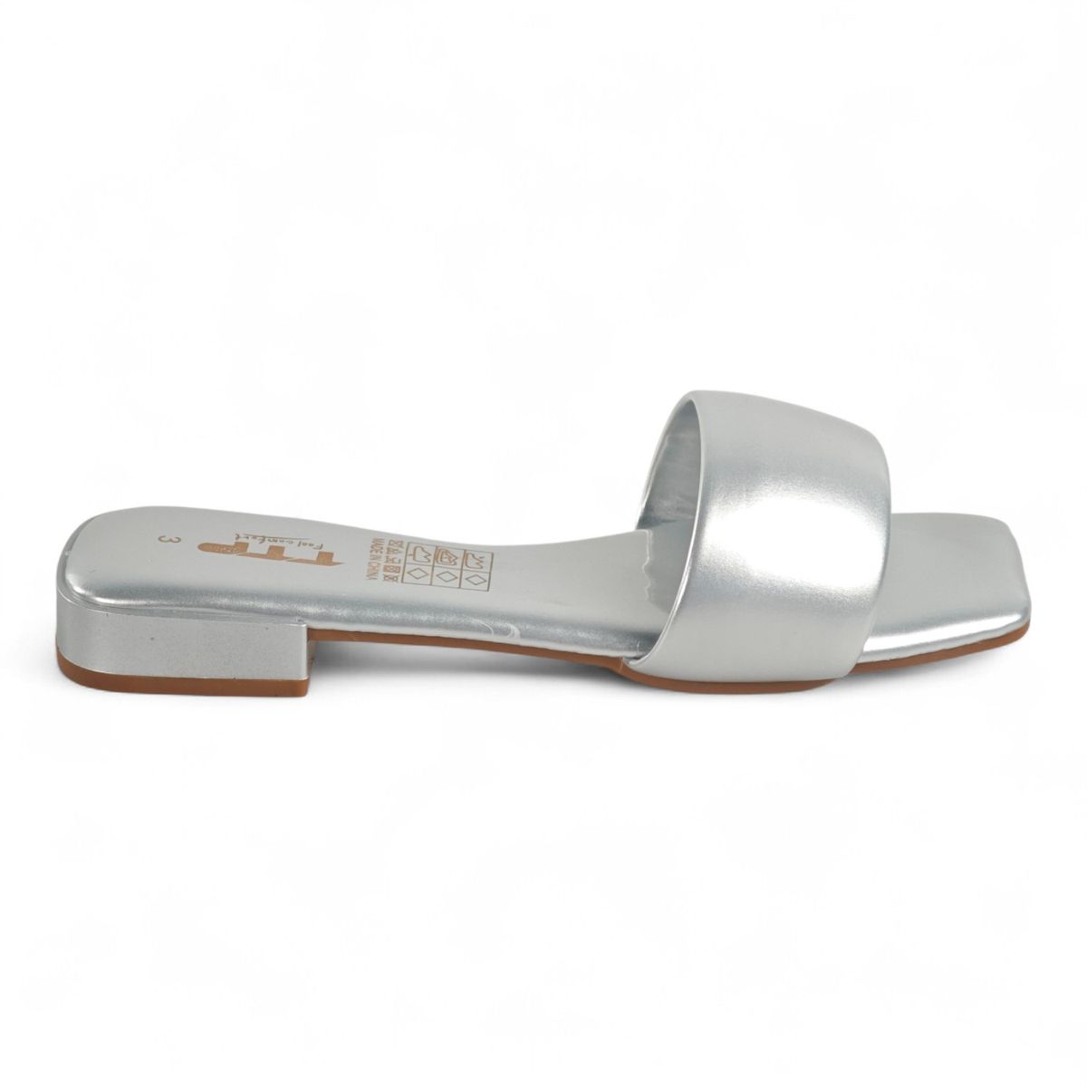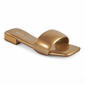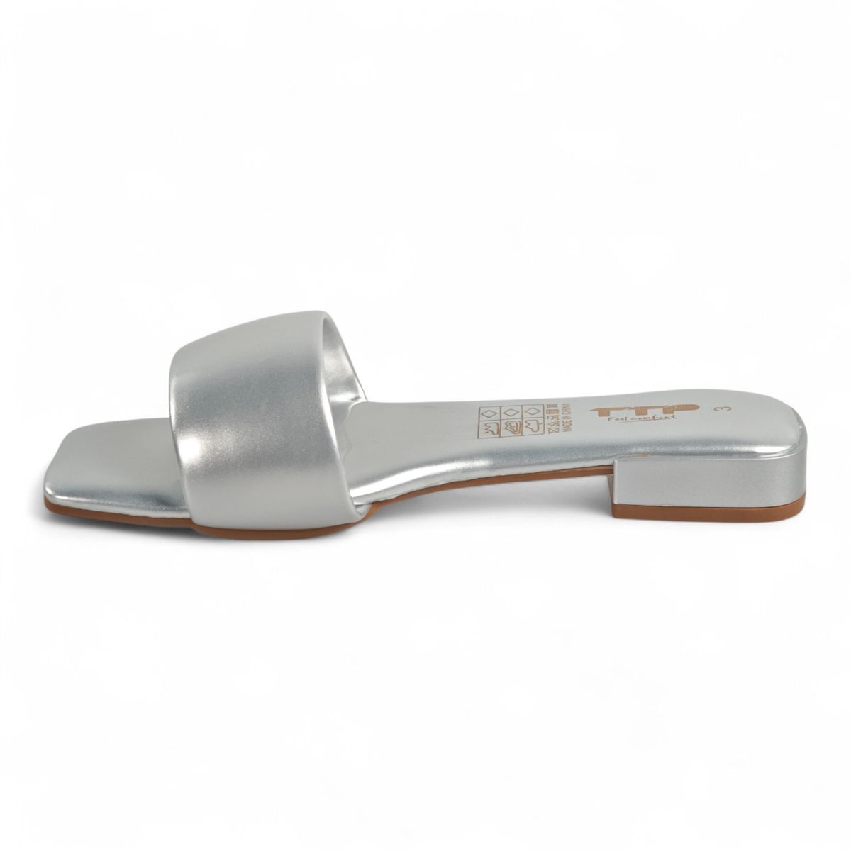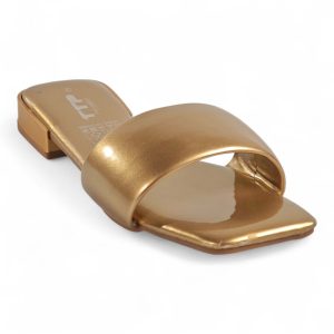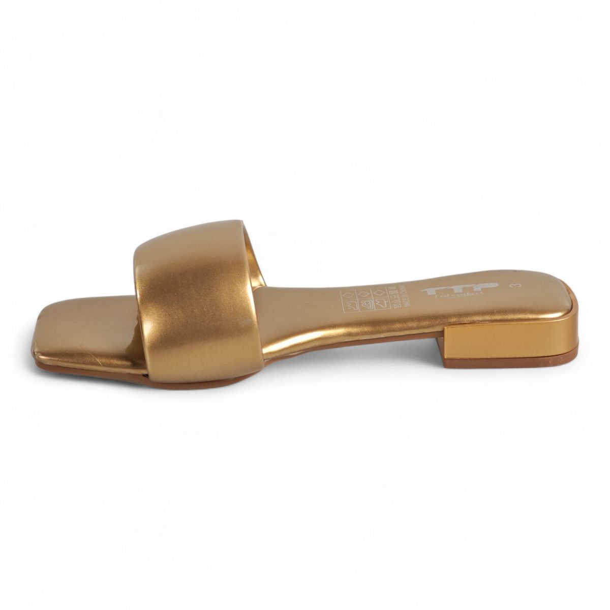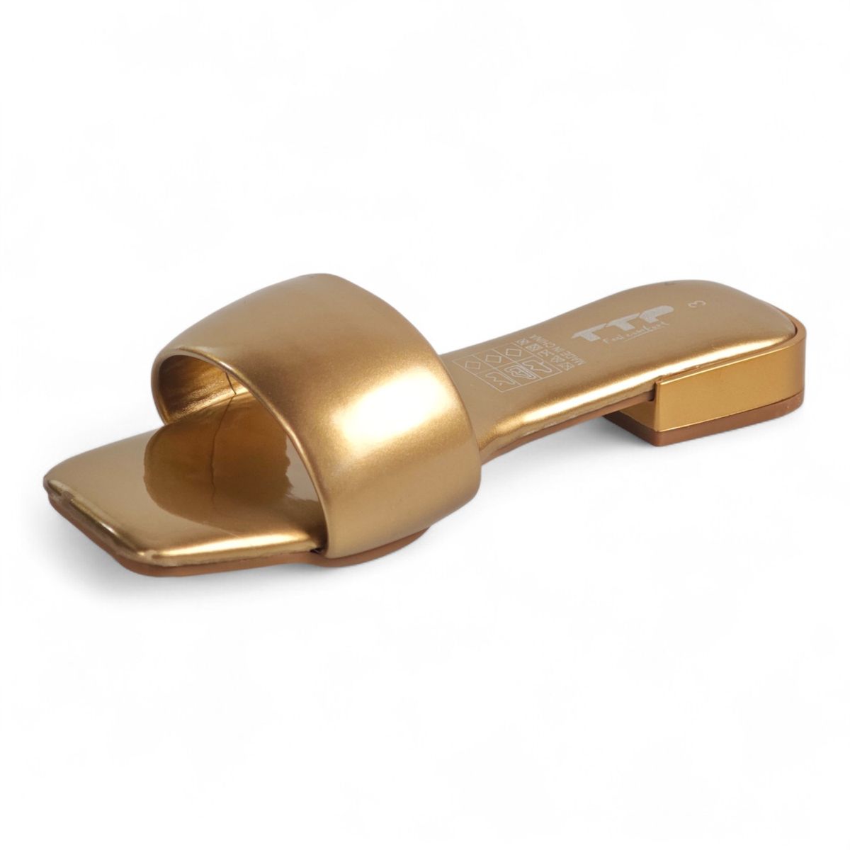 The TTP The Drop slide blends modern architecture with everyday comfort. A wide PU strap and square toe create a sleek profile while the PU+EVA insole cushions every step. Finished on a durable PVC outsole, these slides move effortlessly from errands to evenings out in three refined finishes: Glossy Black, Metallic Gold, and Metallic Silver.
