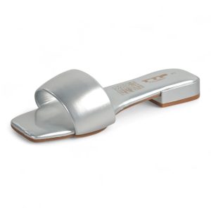- Silhouette: Slide with wide strap; square toe; low stacked heel