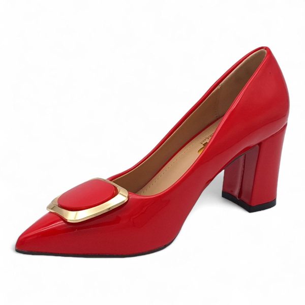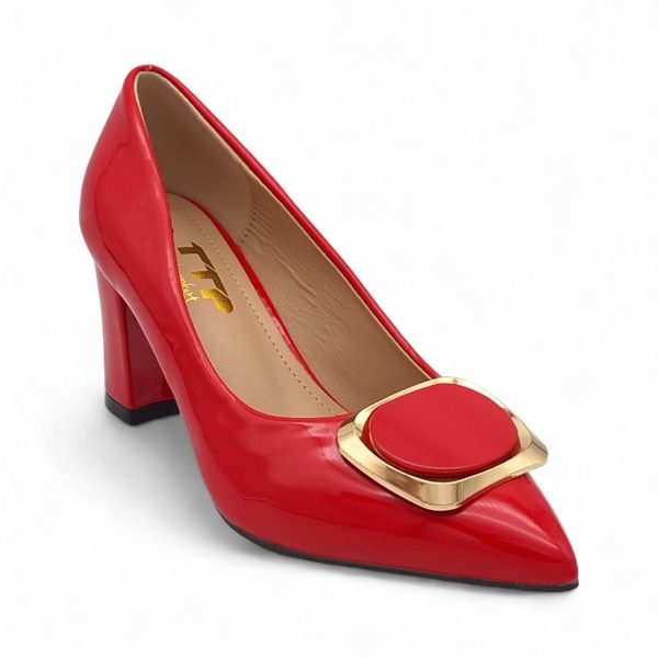 TTP Women Patent PU Block Heels with Square Decor JSF81
